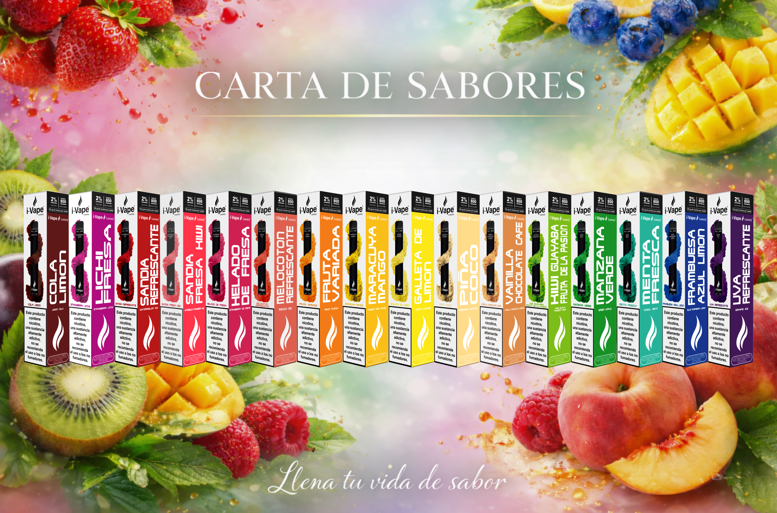 Bienvenidos a la carta de sabores de i-Vape. Aquí encontrarás una amplia variedad de sabores cuidadosamente seleccionados para satisfacer los gustos de nuestros clientes más exigentes. Desde el clásico y refrescante sabor de menta, hasta la dulzura del melocotón y la explosión de frutas tropicales, tenemos sabores para todos los gustos.